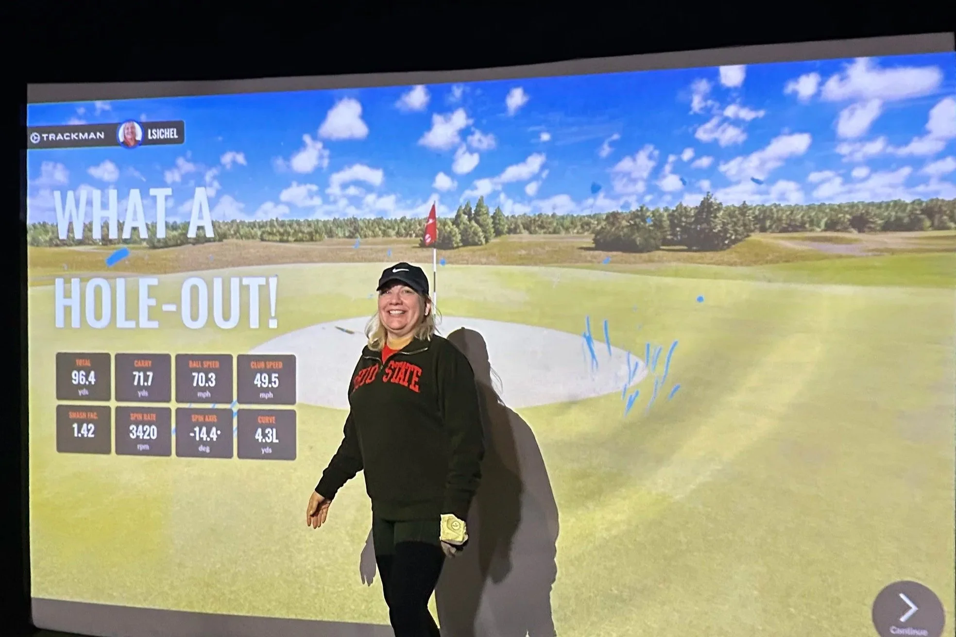 When someone holes out from off the green, TrackMan does this cute little celebration animation. I've watched it happen twice so far this season, and the shrieking and high-fives that followed were absolutely worth the price of admission.